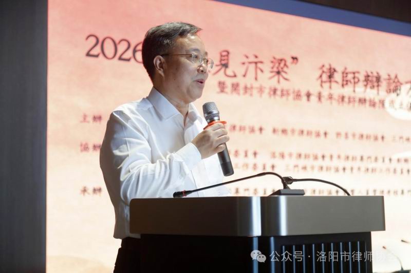 4月19日上午,2026“豫见汴梁”青年律师辩论友谊交流赛在开封举行。本次活动由郑州、洛阳、新乡、许昌、三门峡、开封六地市律师协会联合主办。开封市司法局党委委员、副局长、市律师行业党委书记付武超,河南省律师行业党委委员、郑州市律师行业党委副书记、郑州市律师协会会长赵虎林,省律协副会长、洛阳市律师行业党委副书记、市律师协会会长杨新涛,三门峡市律师行业党委副书记、三门峡市律师协会会长张华,郑州市律师协会副会长朱丹,洛阳市律师行业党委委员、市律协副会长曹振峰,新乡市律师协会副会长宋华、许昌市律师协会副会长李金创及各地的青年律师代表及司法行政机关、律师协会相关负责同志参加活动。